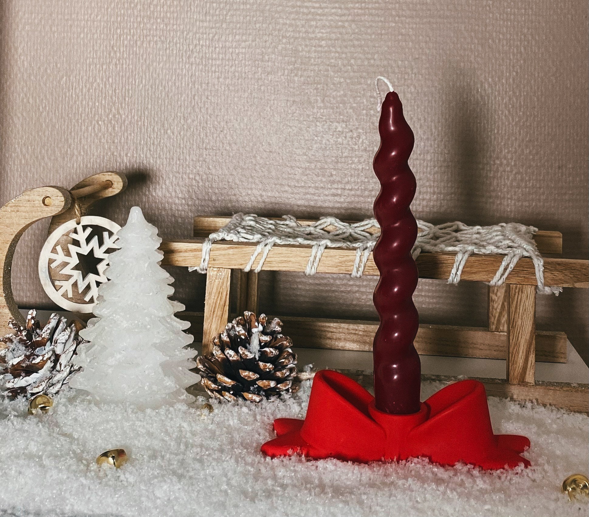 Illuminez vos fêtes avec notre porte-chandelier en édition limitée, pensé pour la magie de Noël. Fabriqué à la main en jesmonite de couleur rouge intense, ce porte-chandelier en forme de gros nœud incarne l'élégance et la chaleur des célébrations de fin d'année. Sa teinte rouge vibrante s'harmonise parfaitement avec une ambiance festive, apportant une touche d'originalité et de charme à votre décoration.